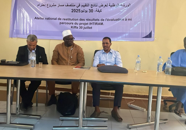 L’atelier qui a eu lieu le mercredi 30 juillet 2025 à Kiffa, a été animé par l’experte en évaluation, Oumoul Khairy Bâ, en présence du Directeur régional du MASEF, Mohamed Salem Ould Ahmed, du représentant de l’Instance, Tfeil Ould Sidi Haiba, du Coordinateur du projet, Aboubekrine Dieng du BIT, du consultant Niang Mamadou, et de plusieurs participants venus d’Aïoun et de Kobeni (Hodh Gharbi), Kiffa (Assaba), Teyarett (Nouakchott) et Sélibaby (Guidimagha).