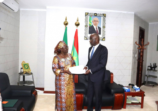 La nouvelle Représentante Résidente du Fonds des Nations Unies pour la Population (UNFPA) en Mauritanie , Dr. Olga Sankara, a présenté ses lettres de créances au Ministre des Affaires Etrangère et de la Coopération, Mohamed Salem Merzoug. Le Ministre s'est engagé à ne ménager aucun effort pour renforcer la coopération entre le gouvernement mauritanien et l'UNFPA.