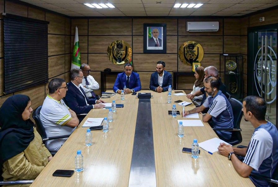 En marge de cette visite de travail, M. Brahim Al Dossari et son équipe ont eu droit à une visite guidée des installations de la Fédération, avant de prendre part à une réunion avec le Président de la FFRIM, en présence du Secrétaire Général, M. Ahmedou M’Beirick, du Directeur Technique National, M. Luis Fuertes, du responsable de l’Arbitrage, M. Rachid Madjeba et du responsable de l’Académie FFRIM, M. Oumar N’Diaye.
